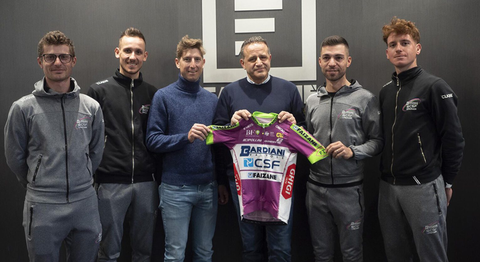 Nuova divisa della Bardiani CSF Faizanè per la stagione 2022 per Zana, Battaglin, Visconti e Fiorelli