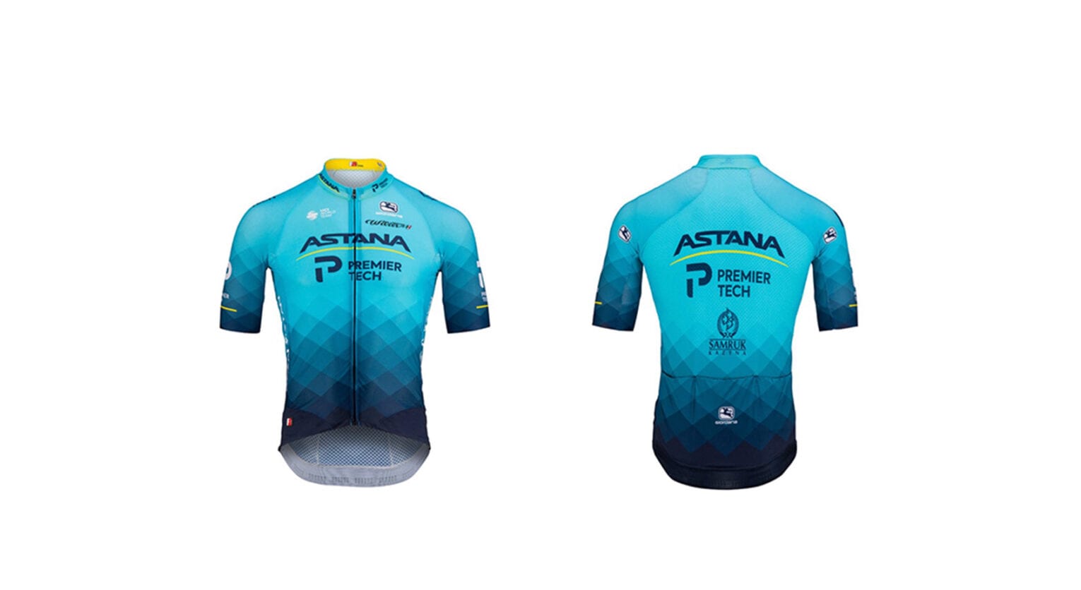 L’abbigliamento da competizione dell’Astana-PremierTech è prodotto in Italia da Giordana. Un marchio storico e molto riconosciuto in modo particolare nel mondo dei professionisti. Un brand capace di raggiungere elevati standard di comodità, oltre a garantire prestazioni all’altezza del grande ciclismo professionistico. Sviluppata assieme agli atleti professionisti del team, questa divisa sposta sempre più in alto il livello di tecnicità, di innovazione e di prestazioni nell’ambito dell’abbigliamento sportivo. Fra le qualità c’è quella di adattarsi perfettamente al corpo dell’atleta come una seconda pelle, che rende ciascun movimento in bici estremamente naturale e confortevole.