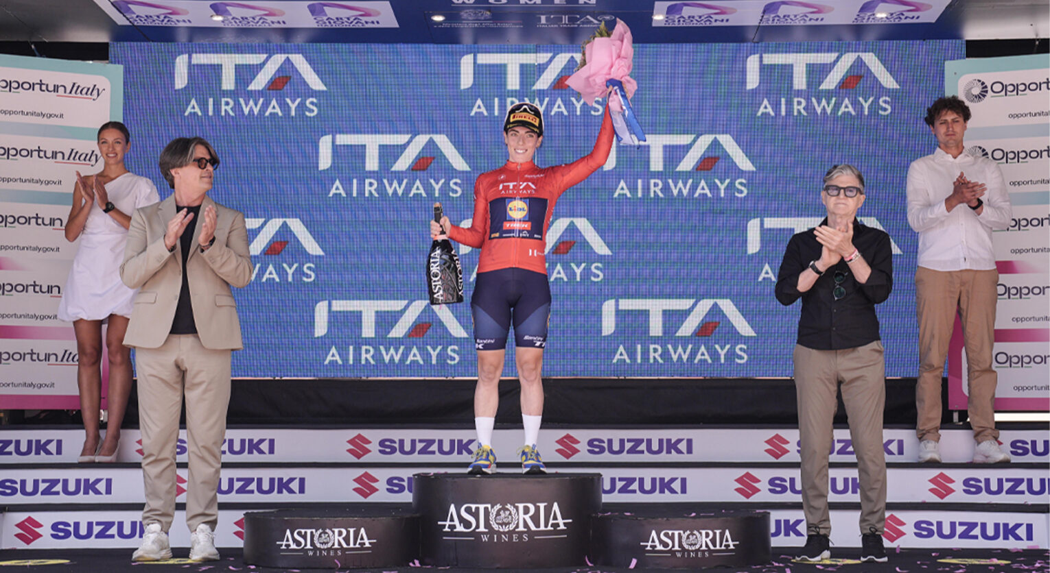 L’arrivo della quarta tappa del Giro Women ha visto le atlete affrontare il percorso da Castello Tesino a Pianezze. E proprio a Pianezze, la vincitrice Sarah Gigante e le protagoniste di giornata hanno avuto l’opportunità di celebrare le loro vittorie con un tocco di autentica eccellenza italiana. Sul podio, incorniciato dal magnifico panorama delle Colline del Prosecco, Patrimonio UNESCO, le atlete hanno difatti brindato con il pregiato Prosecco Valdobbiadene Superiore DOCG di Astoria. Questo non è stato un semplice brindisi, ma un vero e proprio omaggio alla terra che ha ospitato la corsa e alla qualità enologica riconosciuta a livello mondiale.