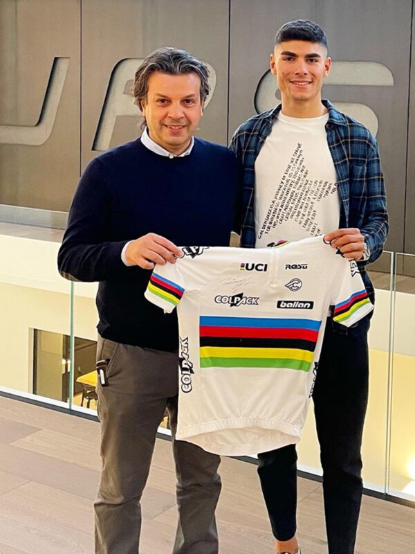 Nel corso della visita in Ursus, il campione del mondo under 23 è stato accompagnato fra i reparti produttivi dell’azienda. Ferronato e i suoi collaboratori hanno così avuto modo di illustrare le tipologie di materiali, le tecnologie e il processo produttivo delle ruote con le quali il giovanissimo atleta di Massa Lombarda è arrivato a vestire la maglia più ambita! Oltre al mondiale, nel 2021 Baroncini ha conquistato il campionato italiano a cronometro, una tappa all’Etoile d’Or e una al Giro d’Italia Under 23. Corsa vinta dal compagno di squadra Ayuso. E’ inoltre vice campione europeo ed italiano in linea e dalla prossima stagione passerà professionista con il team WorldTour Trek-Segafredo.