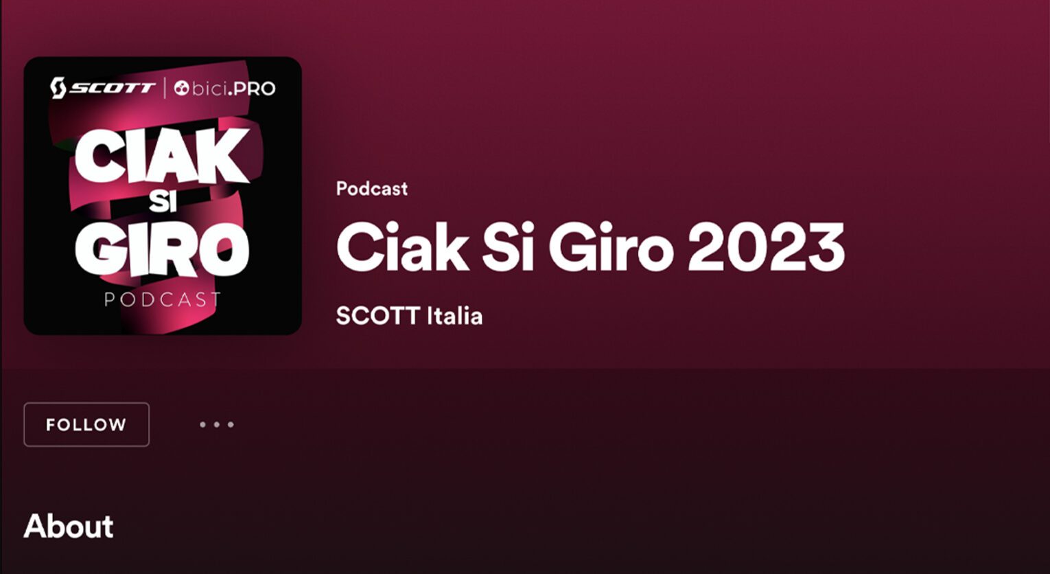 “Ciak si Giro” è un podcast di Scott Sports Italia realizzato in collaborazione con bici.PRO. La cura editoriale è di Nicola Gavardi, Enzo Vicennati, Filippo Lorenzon e Alberto Fossati. La producer e il sound design sono di Alessandra Belotti.