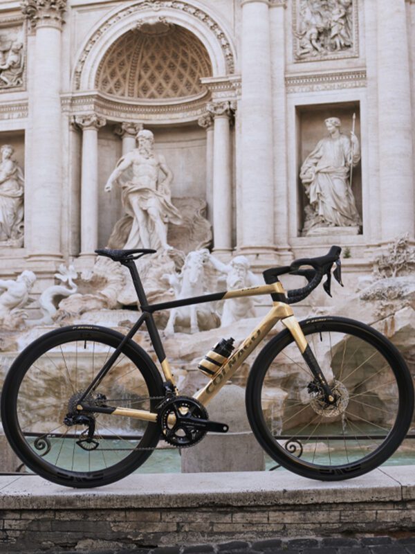 A impreziosire ancora questo pezzo d’arte unico ci sono altri due manufatti realizzati in oro puro, 24 carati. Si tratta dell’Asso di Fiori, iconico simbolo di Colnago, che è stato posizionato in rilievo sul tubo di sterzo frontale e sullo snodo del reggisella. Anche questi pezzi sono stati realizzati a mano.