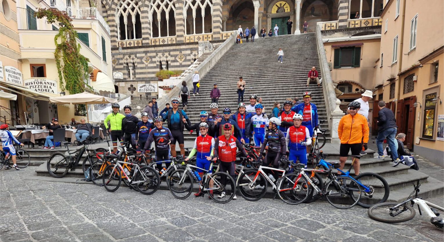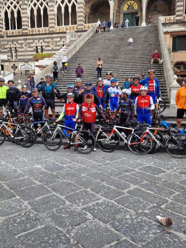 Il primo stop, decisamente “goloso”, è stato effettuato a Minori, presso la conosciutissima pasticceria Sal De Riso. Una volta risaliti in bicicletta, la direzione è stata quella di Amalfi per una foto ricordo scattata sulla scalinata del suo meraviglioso Duomo (foto di apertura). Passaggio poi da Sant’Agata dei Due Golfi e da Sorrento, dove il Residence Le Terrazze di Alberto Alviani ha contribuito a ristorare il gruppo dei ciclisti con la sua proverbiale accoglienza. La giornata è poi terminata… a tavola nella mitica Università della Pizza di Vico Equense.