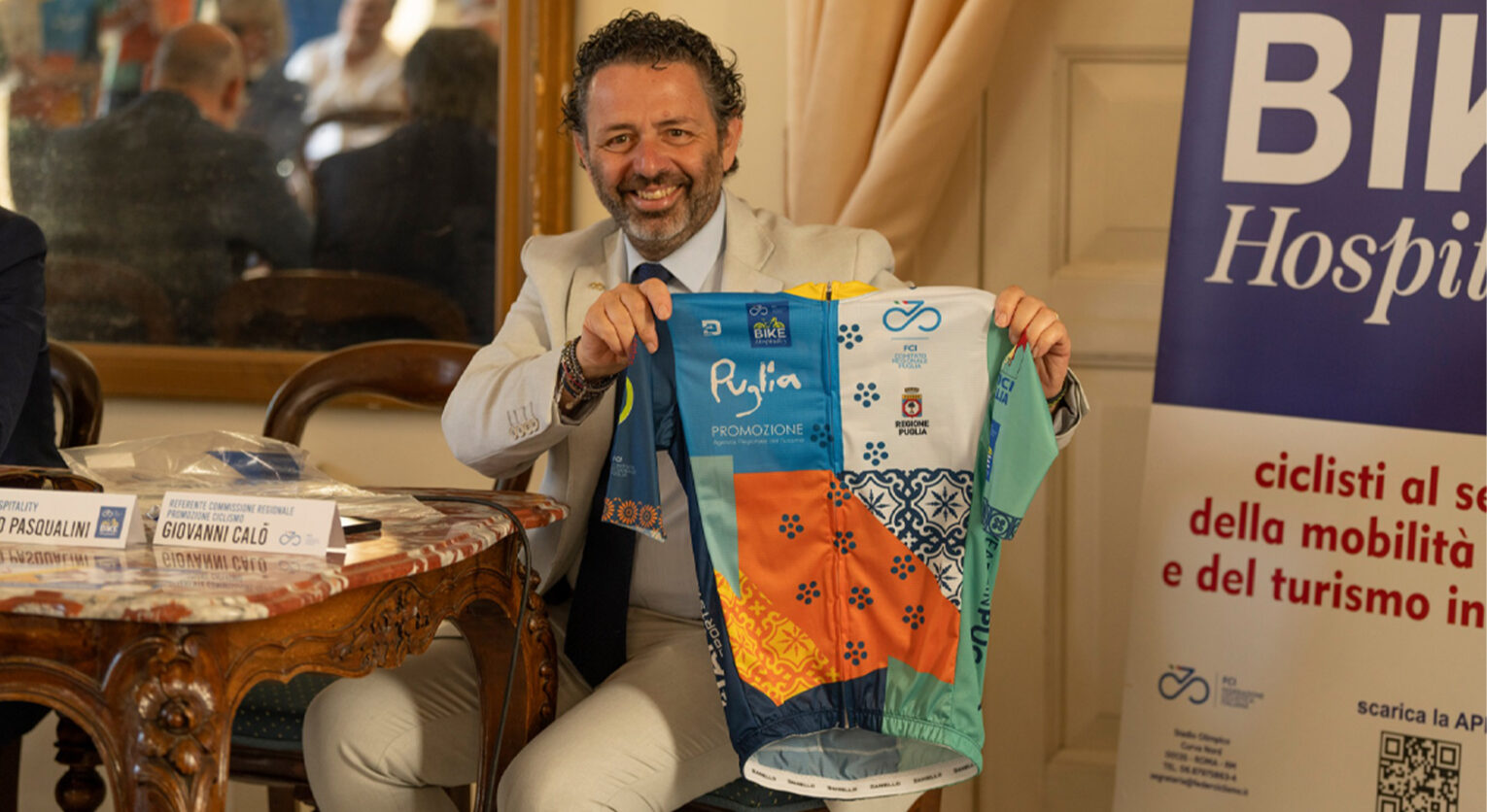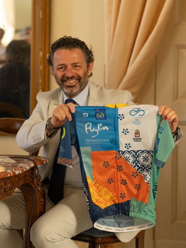 Un momento importante è stato il battesimo della nuova maglia delle rappresentative di Federciclismo Puglia come strumento di visibilità del progetto. Sulla maglia – realizzata dalla realtà campana D’Aniello Sportswear di Paolo D’Aniello e ideata dal designer Giuseppe Loverre – sono presenti i loghi Regione Puglia, ANCI Puglia, Pugliapromozione, l’hashtag We Are in Puglia, il logo del Bike Hospitality e gli sponsor con i brand LOME e, appunto, Daniello.