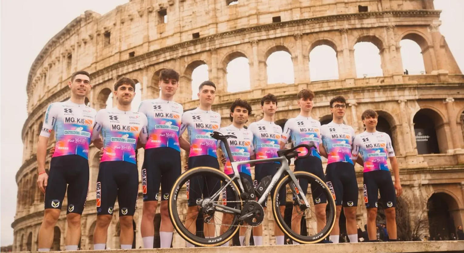 MG.K Vis Costruzioni e Ambiente nasce come struttura dilettantistica. Cresce rapidamente. Si consolida nel panorama internazionale fino a diventare una delle realtà continental più rispettate in Italia. Alla guida del progetto c’è Angelo Baldini, figura centrale nello sviluppo sportivo e organizzativo del team.