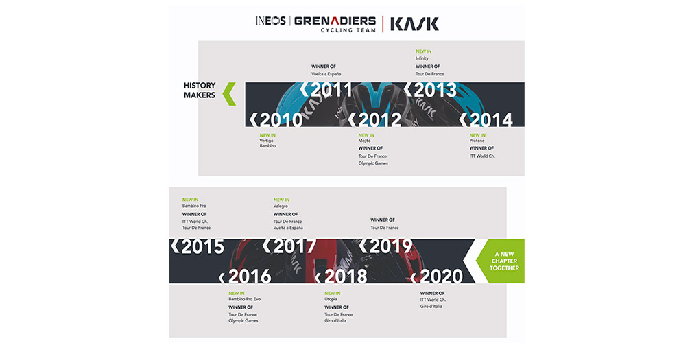 Diego Zambon, General Manager di Kask, ha dichiarato: «Mentre ci avviciniamo alla dodicesima stagione con la squadra di ciclismo di maggior successo al mondo, siamo ora molto felici di dire che questa partnership continuerà fino al 2024. Ineos Grenadiers ci affida la sicurezza dei loro corridori, come fornitore di caschi, è un vero onore e motivo di orgoglio, ma anche una grande responsabilità. Il loro contributo nella progettazione e nello sviluppo dei nostri caschi è stato inestimabile e la loro spinta al successo ci ha a sua volta spinto a innovare e migliorare costantemente i nostri prodotti. Mancano altri quattro anni!»