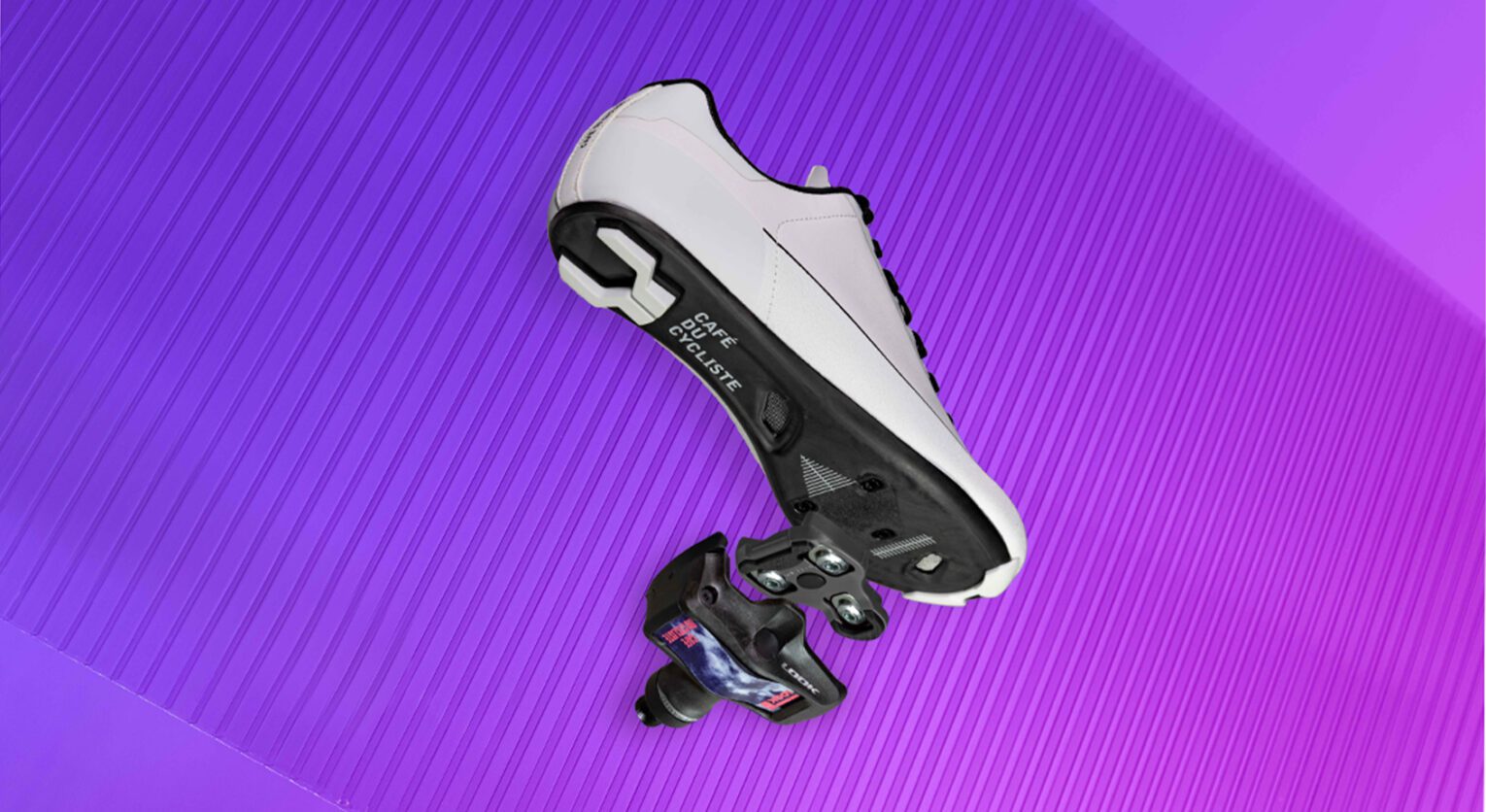 La tecnologia di supporto del tallone FishGrid, la soletta Solestar e le suole in carbonio di Café du Cycliste sono un complemento ad alte prestazioni per i pedali Keo Blade Carbon Ceramic di Look.