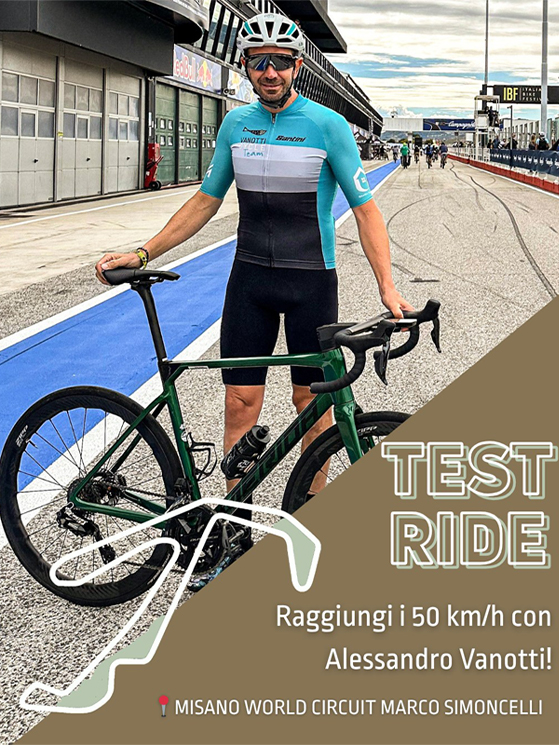 Il bergamasco, oggi brand ambassador Merida, sarà difatti la guida d’eccezione di questa giornata. L’obiettivo? Insegnare ai partecipanti come mantenere una velocità di 50 km/h per l’intero sviluppo del Misano World Circuit. Non si tratta di una semplice uscita in bici, ma di una vera e propria lezione di tecnica e potenza, pensata per spingere i ciclisti oltre i propri limiti.
