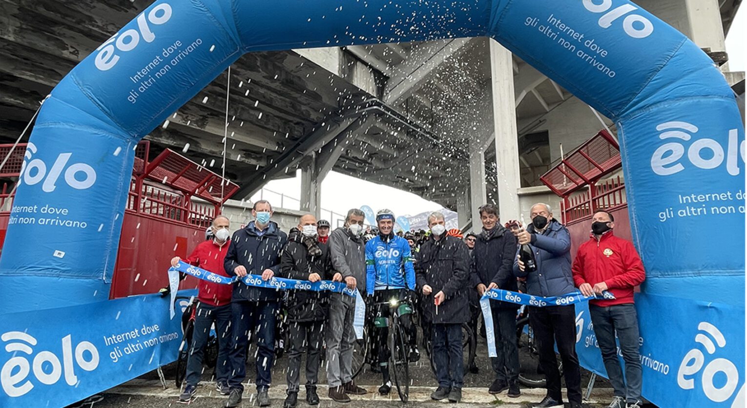 Per l’inaugurazione dello scorso 28 novembre, si sono presentati allo stadio Franco Ossola oltre cento ciclisti che al risveglio hanno trovato le colline attorno a Varese imbiancate dalla prima neve di stagione. Tra loro anche gli ex professionisti Stefano Zanini e Noemi Cantele. A tagliare il nastro erano presenti oltre allo stesso Rinaldo Bellerio, il sindaco di Varese Davide Galimberti e Renzo Oldani, presidente della Società Ciclistica Alfredo Binda che ogni anno organizza la Tre Valli Varesine e che ha curato la logistica dell’evento. Per Eolo era presente Ivan Basso che ha guidato poi il gruppo nella scalata accompagnato da Alessandro Fancellu e Andrea Montoli del team Eolo-Kometa. Era presente per lo stesso team anche Edward Ravasi che però non ha potuto pedalare in quanto ancora convalescente.