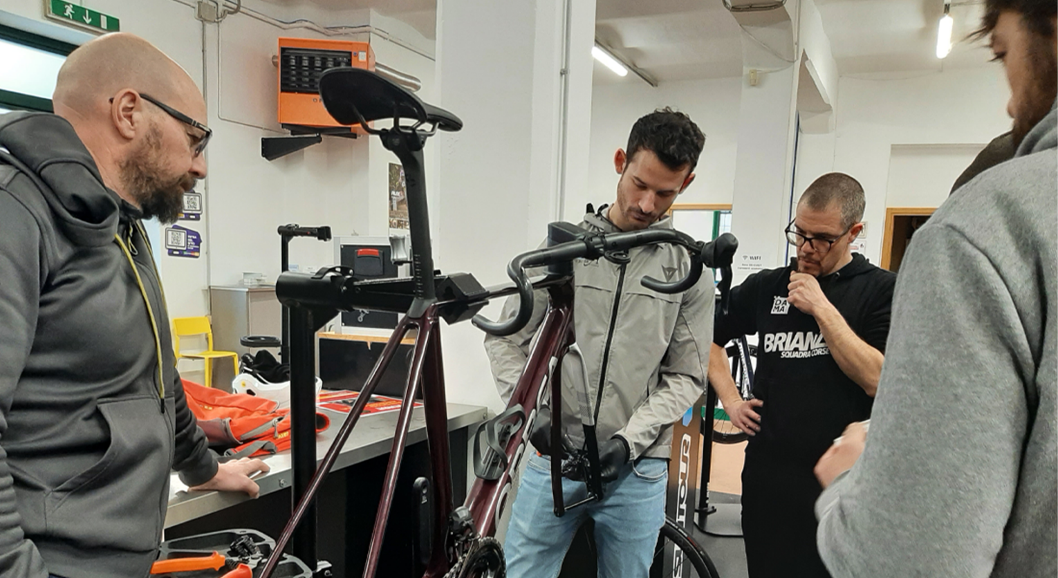 In realtà la nostra attività formativa è già ripartita a settembre. I ragazzi che vedete oggi qui in Academy fanno parte di un progetto partito a luglio e realizzato in collaborazione con la Camera di Commercio di Milano Monza Brianza Lodi e Formaper. La loro attività di formazione presso la nostra Academy si articola su tre giornate, ciascuna delle quali di otto ore. La prima giornata è dedicata al basso di gamma mentre le ultime due all’alto di gamma. Il nostro obiettivo rimane sempre quello di aiutare questi ragazzi a trovare un impiego nel mondo bici.