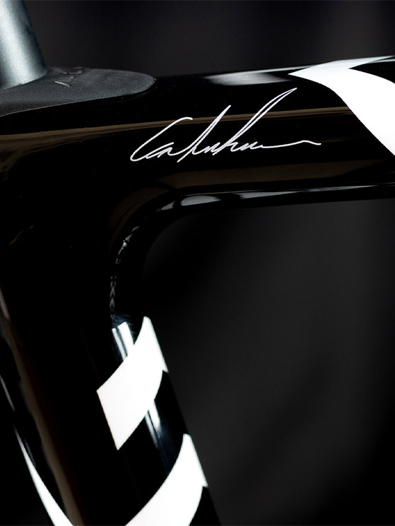 Ogni telaio presenta la firma di Alberto Contador e Ivan Basso su entrambi i lati del tubo orizzontale, nonché un distintivo con il numero dell’edizione (da 01 a 21) scelta dal cliente. Ogni modello sarà assemblato a mano presso lo stabilimento di Pinto, la città natale di Contador.