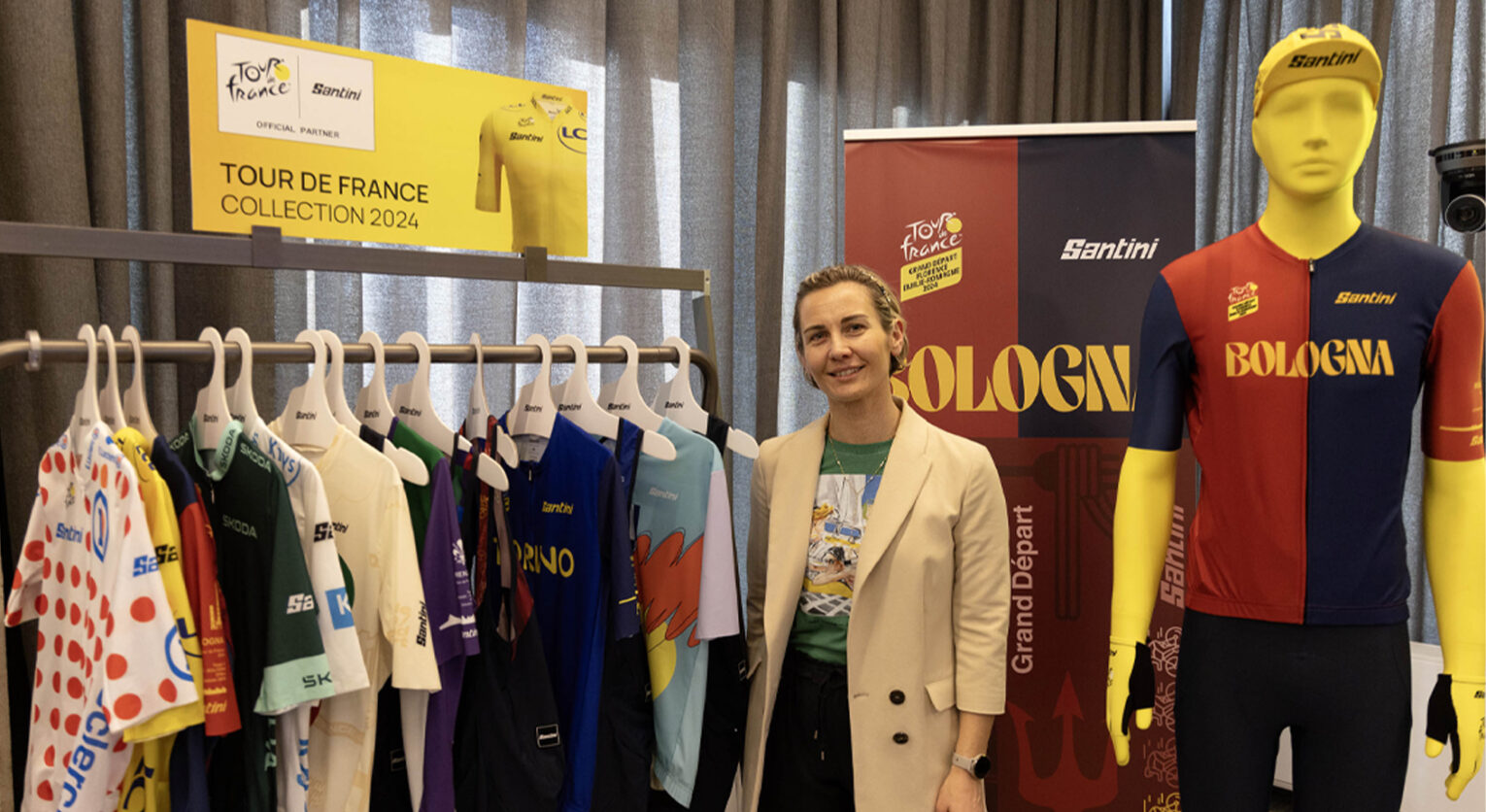 Per la seconda tappa del Tour de France di domenica 30 giugno, Santini ha confezionato un completo che racchiude in sé lo spirito della città felsinea. I colori del kit sono il rosso e il blu, che da sempre contraddistinguono la squadra di calcio del Bologna, vera rivelazione del nostro campionato. Sul retro della maglia è presente una serie di elementi grafici che richiamano alcuni dei simboli più iconici della città: la Torre degli Asinelli, la bandiera del comune e il tridente della fontana di Nettuno. Vi è anche un richiamo a uno dei numerosi piatti tipici: gli spaghetti alla bolognese.