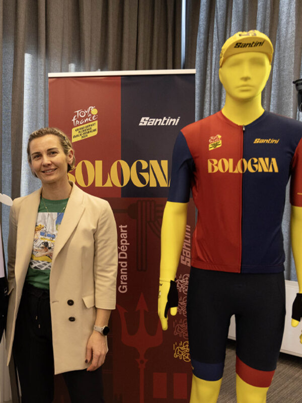 La presentazione ufficiale del kit dedicato a Bologna si è tenuta venerdì 22 marzo, esattamente a 100 giorni esatti dall’arrivo del Tour in città. Alla conferenza stampa erano presenti Davide Cassani, Presidente del Consiglio di amministrazione della società di APT Servizi Emilia-Romagna, Stefano Bonaccini, Presidente della Regione Emilia-Romagna, Giammaria Manghi, capo della segreteria politica della Presidenza della Regione, e Paola Santini, Marketing Manager di Santini Cycling.