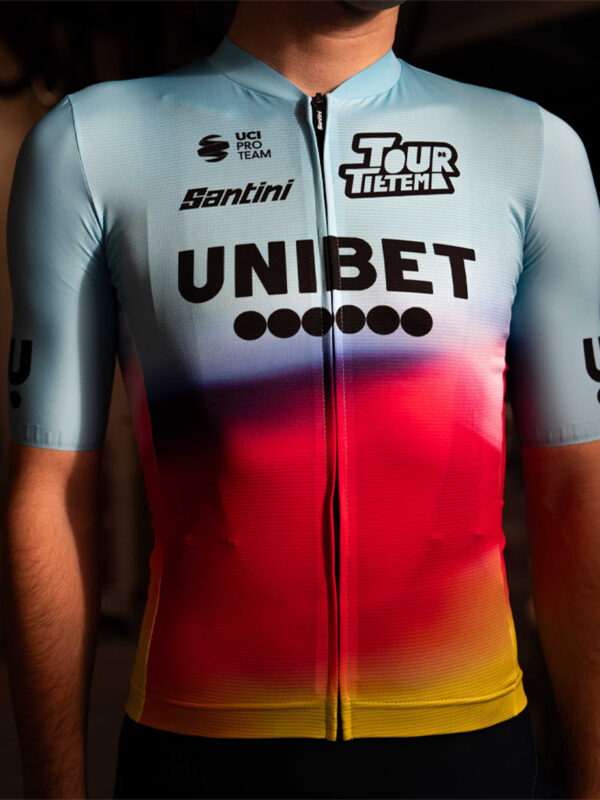 Per la realizzazione della divisa ufficiale 2024 del Tour de Tietema-Unibet lo staff Santini, guidato da Fergus Niland, direttore creativo dell’azienda bergamasca, ha lavorato in stretto contatto con il team con l’obiettivo di realizzare una maglia che rispecchiasse perfettamente l’entusiasmo della formazione olandese e dei suoi fondatori.
