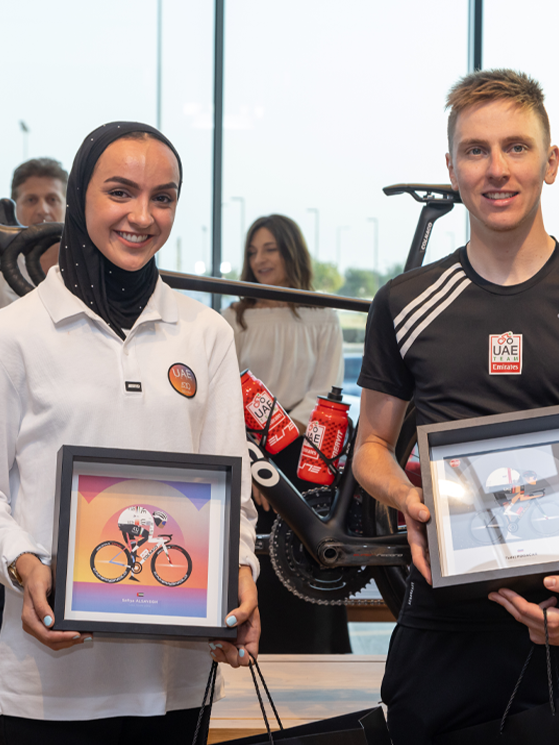 L’inaugurazione del Colnago Abu Dhabi è avvenuta lo scorso 21 ottobre alla presenza dei campioni del brand lombardo. Stiamo parlando naturalmente degli atleti dell’UAE Team Emirates e dell’UAE Team ADQ. Le due formazioni si sono ritrovate a Abu Dhabi per una sorta di “rompete le righe” di fine stagione e hanno approfittato dell’occasione per vedere il nuovo flagship store. Non poteva mancare Tadej Pogacar, il due volte vincitore del Tour de France e dell’ultimo Il Lombardia. Con lui Juan Ayuso, reduce dal terzo posto alla Vuelta, Matteo Trentin e Joao Almeida. Per la UAE Team ADQ era presente Yousif Mirza, insieme a Sofia Bertizzolo, Laura Tomasi, Eugenia Bujak e Safiya Al Sayegh.