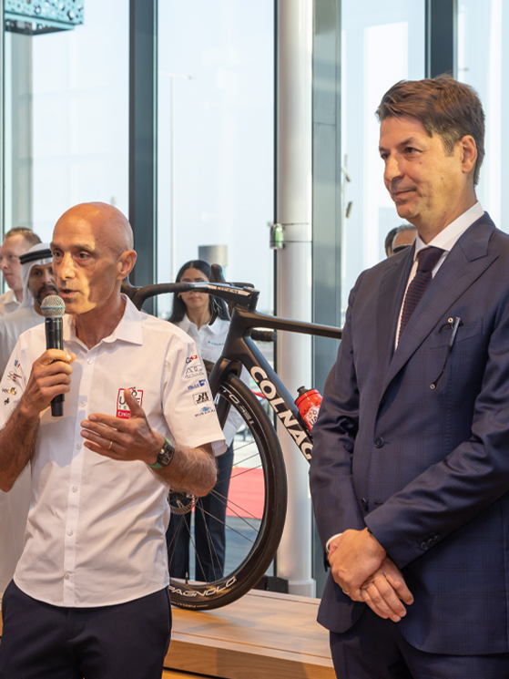 All’inaugurazione del Colnago Abu Dhabi era presente Nicola Rosin, Amministratore Delegato di Colnago, oltre ai soci dell’azienda. E’ stato lo stesso Rosin a sottolineare con un suo intervento quanto il nuovo flagship store rappresenti nel migliore dei modi l’essenza del marchio Colnago.