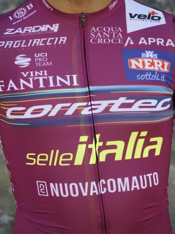 Effettivamente è stata una sfida importante, che abbiamo comunque vinto. Pochi giorni prima del via, il team ha ufficializzato l’ingresso di nuovi sponsor come Selle Italia, DF Sport Specialist e Bicimania. Abbiamo dovuto quindi rivedere in tempi rapidissimi la grafica della maglia e procedere con la sua realizzazione. Siamo riusciti a fare tutto in tempo e a farlo bene. A proposito della maglia, avevamo anche già pronta una nuova versione ultraleggera. Dal momento che siamo a maggio e che non fa ancora caldissimo, abbiamo però deciso di rimandare a giugno la sua presentazione, quando le temperature saranno più elevate.