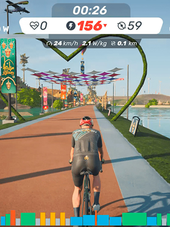 Conosciuta per aver deciso la classifica finale dell’ex Abu Dhabi Tour e oggi tappa fondamentale dell’UAE Tour, Jebel Hafeet è una vera e propria montagna sacra per i ciclisti. Ha visto trionfare campioni del calibro di Esteban Chaves, Adam Yates e Tadej Pogacar, e oggi – grazie a MyWhoosh – offre a tutti la possibilità di misurarsi con la sua durezza.