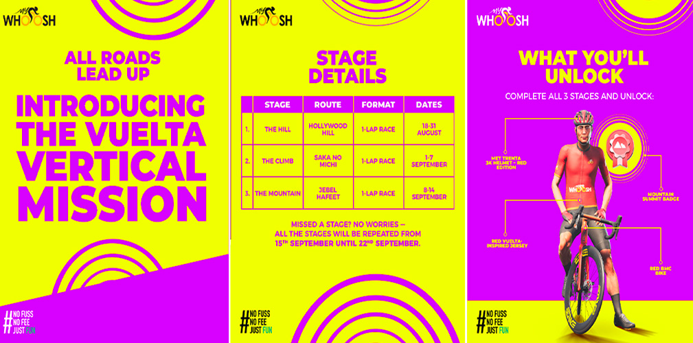 Il ciclismo virtuale si prepara a infiammare questo periodo di fine estate. Mentre i professionisti si sfideranno sulle salite estenuanti de La Vuelta a España, i ciclisti di tutti i giorni avranno la possibilità di affrontare la loro personale sfida da Grand Tour direttamente da… casa. MyWhoosh ha difatti lanciato la Vuelta Vertical Mission, un evento gratuito che promette di testare la resistenza e la grinta di ogni singolo appassionato deciso a misurarsi con l’iniziativa.