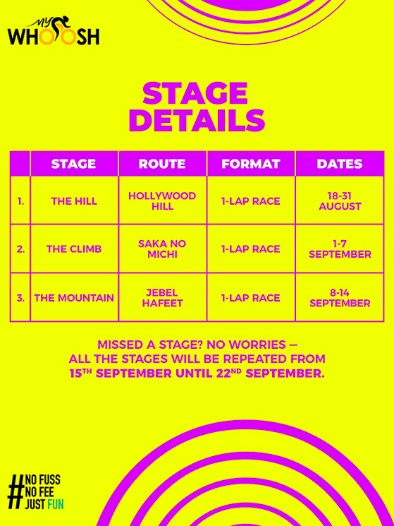 In realtà, la Vuelta Vertical Mission non è un semplice evento, ma un’esperienza suddivisa in tre tappe progressive, pensate per portare i partecipanti al limite. Dal 18 agosto e fino al 22 settembre, i ciclisti virtuali che lo vorranno affronteranno tre salite che hanno segnato la storia del ciclismo virtuale su MyWhoosh. La sfida inizierà con la dolce pendenza di Hollywood Hills, per poi passare alla più impegnativa Saka No Michi e culminare con la tappa regina, l’iconica scalata di Jebel Hafeet