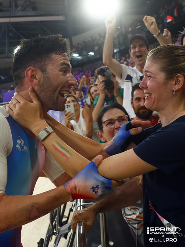 C’è stato un momento, mentre gli italiani erano avviliti per l’opaco omnium di Viviani, in cui un’azzurra si è alzata dalla tribuna, saltando al collo del nuovo campione olimpico francese. Sarebbe stato strano, se non fosse che Alzini e Thomas sono compagni nella vita e Martina ha vissuto accanto al suo “Ben” una rincorsa impegnativa come poche. Il tempo di un tramonto e l’indomani era nuovamente in lacrime ai piedi del podio di Guazzini e Consonni, sue… sorelle dai giorni della Valcar. Emozioni diverse che hanno dato alla trasferta olimpica di Martina un sapore diverso.
