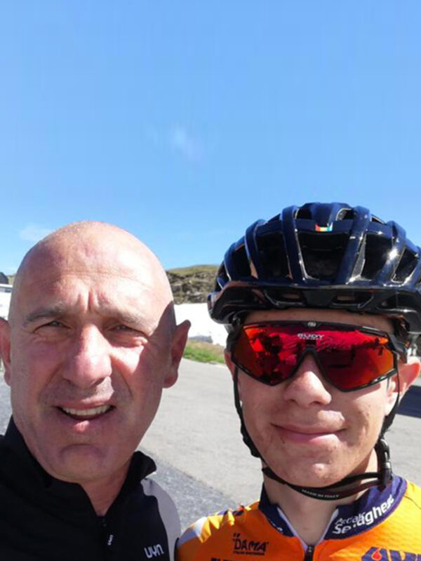 Ottimo, frequenta il Liceo Scientifico Sportivo. Di questo abbiamo parlato molto: sa bene che per me e sua madre l’idea di privilegiare l’attività ciclistica non è un’opzione. Molti ragazzi lo fanno, lasciano gli studi e poi quando non trovano sbocchi non hanno un piano B. Devo dire che è un ragazzo con la coscienza sulle spalle, è determinato nello studio e questo ci conforta. Certamente far convivere le due cose non è semplice, l’attività ciclistica a quell’età dovrebbe anche essere commisurata agli impegni scolastici e questo non succede nella compilazione dei calendari, comunque finora abbiamo trovato nel suo istituto molta comprensione.