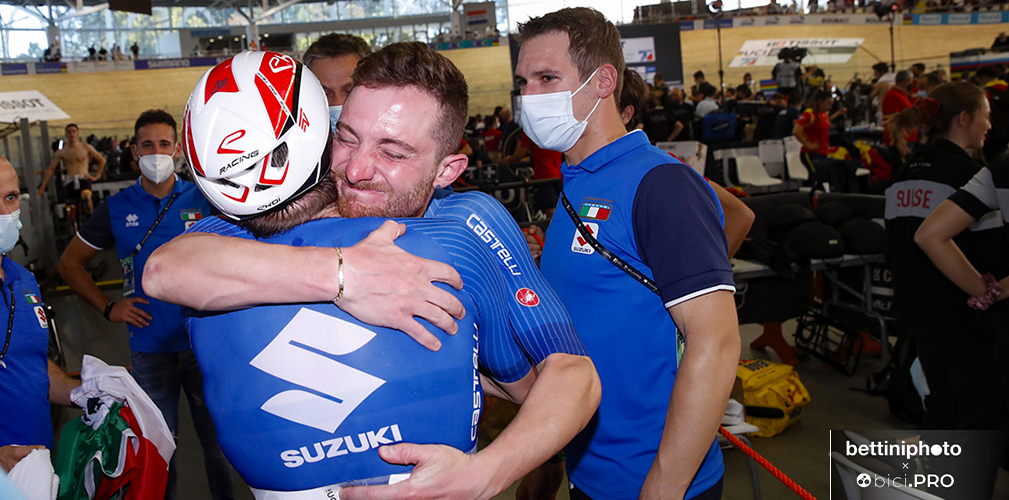 Professionista da cinque anni, Simone è uno dei fantastici campioni olimpici di Tokyo nel quartetto. E quando hai la forza di restare concentrato su sfide ad alta tensione nelle quali ti giochi tutto in 4 minuti, probabilmente hai anche la lucidità e la consapevolezza per farti carico di un finale in volata.