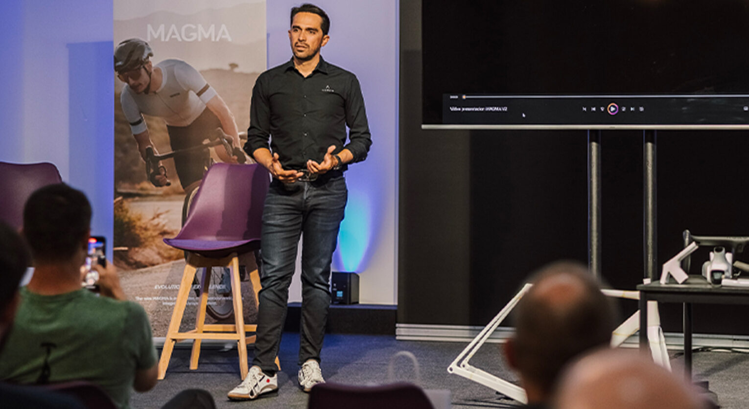 Quando si parla di tecnica della bicicletta Contador sale in cattedra. Argomenta e spiega con la stessa autorevolezza che metteva sul piatto quando era professionista. Lo abbiamo incontrato durante la presentazione della nuova Aurum Magma, la bici che nasce dalle sue corde.