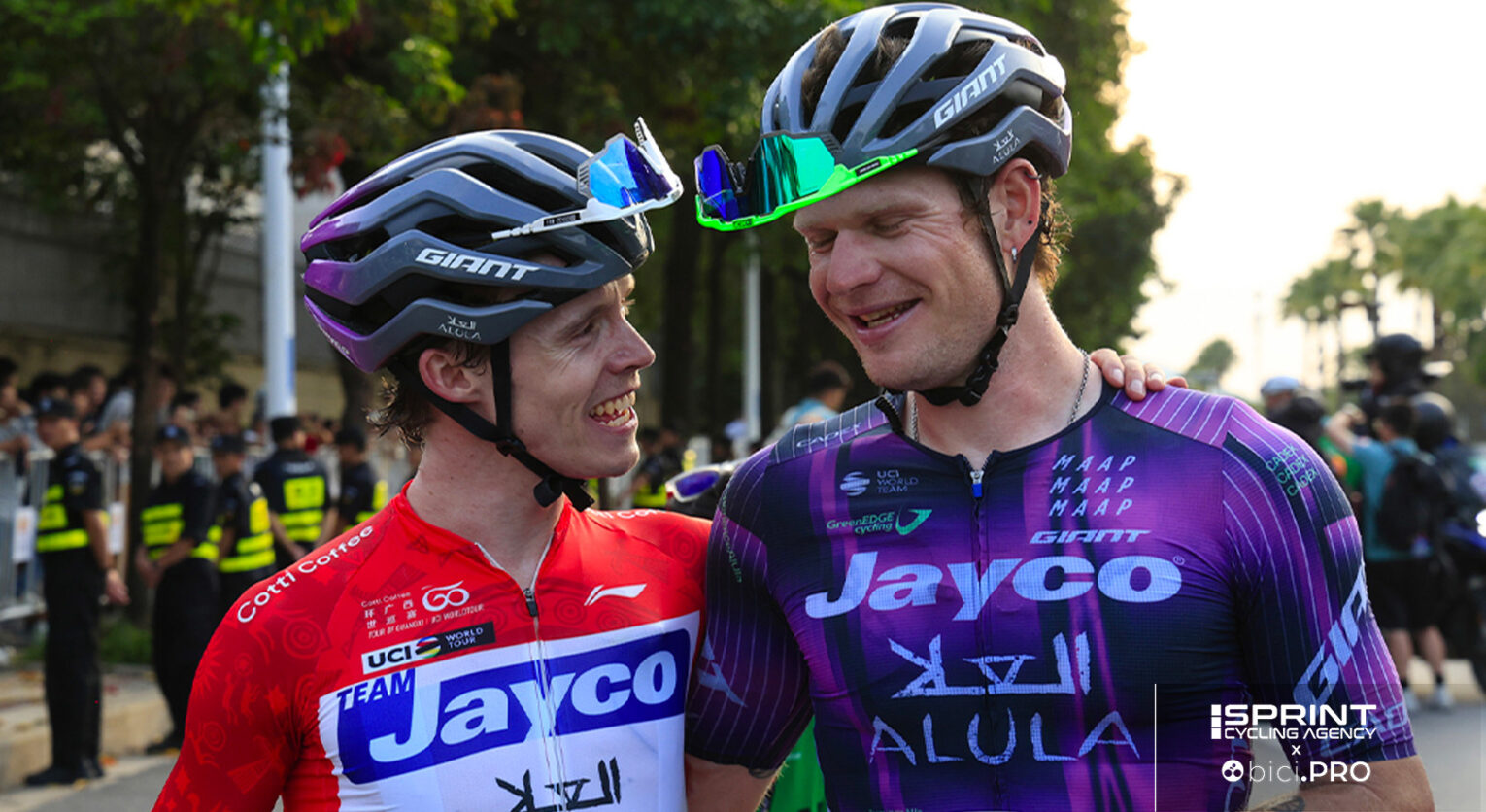 Guai ad accontentarsi nel ciclismo moderno. Lo sa bene Brent Copeland, che gira nell’ambiente oramai da più di 26 anni dopo essere sceso di sella nel 1999. Gli sponsor vogliono risultati. Le squadre si fondono e non sempre gli investimenti fatti a tavolino portano agli obiettivi sperati una volta che si è su strada. Il general manager della Jayco-AlUla non si nasconde dietro a un dito. Nei giorni scorsi ha applaudito il successo nella classifica generale al Tour of Guangxi di Paul Double (in apertura), ma rimane coi piedi per terra.