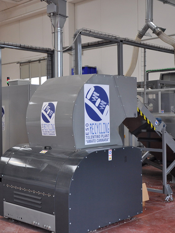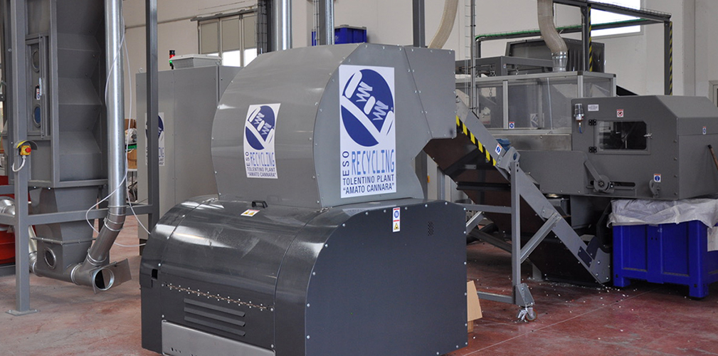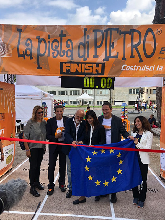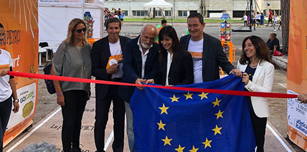 ESO, l’azienda che trasporta i rifiuti d’ufficio, è a Milano. Invece a Tolentino, in provincia di Macerata, c’è il primo impianto dei 10 impianti che vogliamo fare in Italia proprio per il recupero dei materiali derivanti dallo sport.