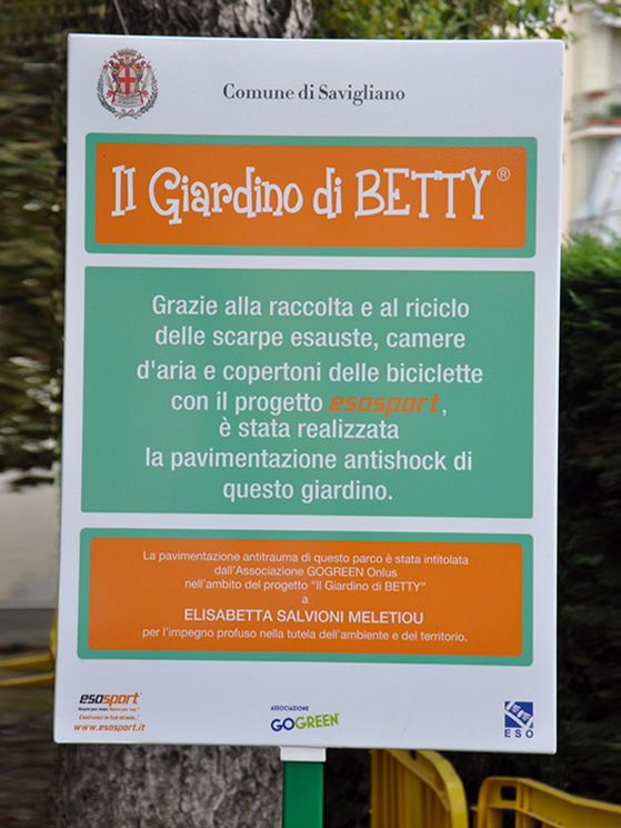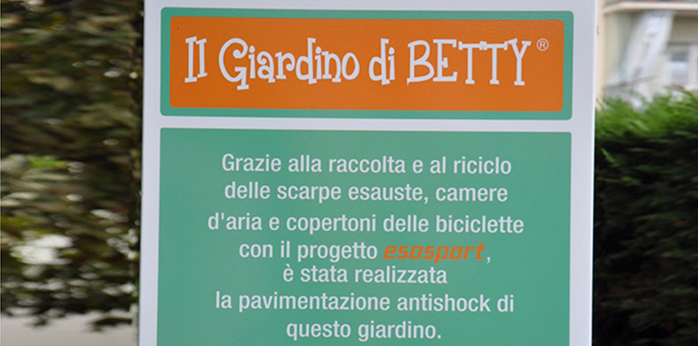 Iniziamo a tagliarle e a dividere il tessuto dalla gomma. All’epoca come direttore tecnico dell’azienda c’era ancora mia moglie, che è mancata nel 2011. Dopo quella prima fase, iniziamo a triturare le scarpe e capiamo quasi subito che con la gomma possiamo fare dei giardini. Così in un battito, organizziamo il modo per ritirare le scarpe esauste. Quando poi nel 2011 Elisabetta è mancata, io ho deciso di dedicare questo progetto a lei, chiamandolo “Il giardino di Betty”.