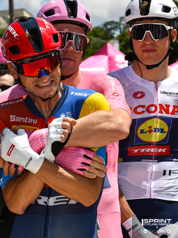 Non vedo l’ora che venga lunedì e sono contento di cosa hanno fatto sinora. C’è un grande campione che è Pedersen, ma finora c’è stata una grande squadra, non c’è ombra di dubbio. Era un obiettivo chiaro per tutti, ci siamo arrivati pronti e lo abbiamo conseguito. Chiaramente Pedersen non porterà la maglia rosa fino a Roma, ma la terrà il più possibile. Abbiamo visto Ciccone aiutare tutti e Mosca davanti dai primi chilometri. Vedere che c’è la squadra è la cosa più bella (purtroppo ieri la Lidl-Trek ha perso Kragh Andersen per frattura nel polso, ndr). Un po’ mordo il freno, darò il cambio a Kim Andersen e ci presenteremo alla seconda settimana belli freschi anche sull’ammiraglia.