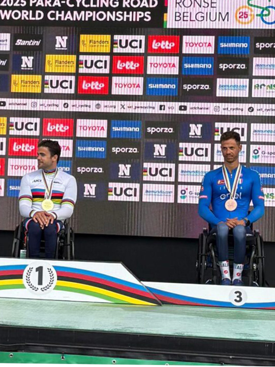L’Italia paraciclistica torna da Ronse, sede belga dei mondiali con 14 medaglie, lo stesso numero della rassegna zurighese dello scorso anno, solo che gli ori sono più che raddoppiati, arrivando all’esatta metà. La spedizione italiana guidata dal cittì Pierpaolo Addesi è stata trionfale, riportando alla memoria antichi bottini, quelli dell’epoca dello sfortunato Zanardi. Ma rispetto ad allora le differenze ci sono e sono sostanziali.