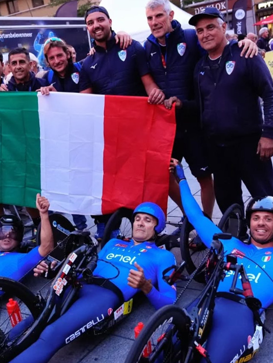 Nelle handbike continuiamo a vincere con campioni che prolungano negli anni i loro successi, ad esempio Mazzone, il portabandiera di Parigi…