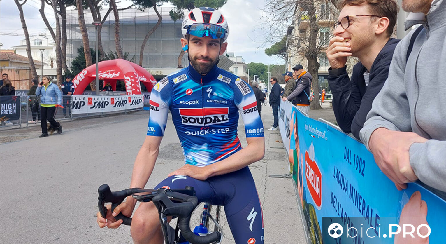 RICCIONE – Da una Coppi e Bartali all’altra. Piove, fa freddo e il vento che arriva dal mare si fa sentire per noi, figuratevi per i corridori. Il pullman della Soudal-Quick Step è parcheggiato nel medesimo punto in cui era posizionato il traguardo della prima tappa di tre anni fa. Quel giorno su Viale Milano splendeva il sole e la primavera era già entrata decisamente in temperatura. Thomas Pesenti chiuse sesto in scia a Mathieu Van der Poel attirandosi l’attenzione di tutti. La sua storia l’abbiamo raccontata e la conosciamo tutti.