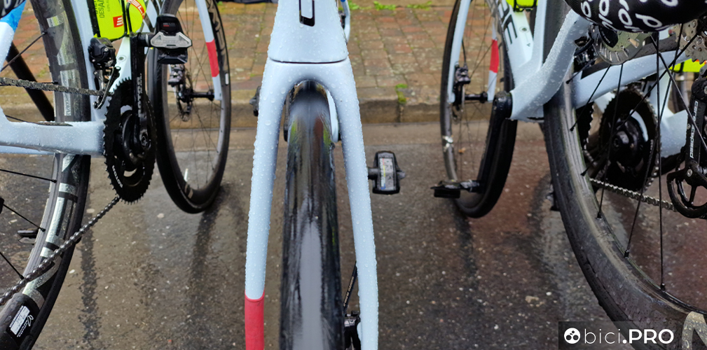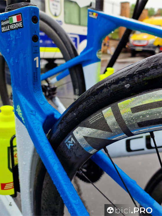 «I giorni prima della gara – riprende Delle Vedove – non siamo tornati sul percorso, anche perché le indicazioni le avevamo prese. Il meccanico aveva il suo bel da fare, ha dovuto sistemare due bici per ogni corridore. Tutti in squadra abbiamo optato per la bici più pesante, lasciando la light sull’ammiraglia. Io ho scelto di correre montando ruote con profilo da 42, i copertoni sono da 32 millimetri tubeless. Ho messo un doppio nastro al manubrio, per attutire al meglio i colpi. Il setting a livello di misure è uguale. Durante la ricognizione di mercoledì mi sono accorto che perdevo le borracce, quindi ho messo un portaborracce diverso, più stretto».