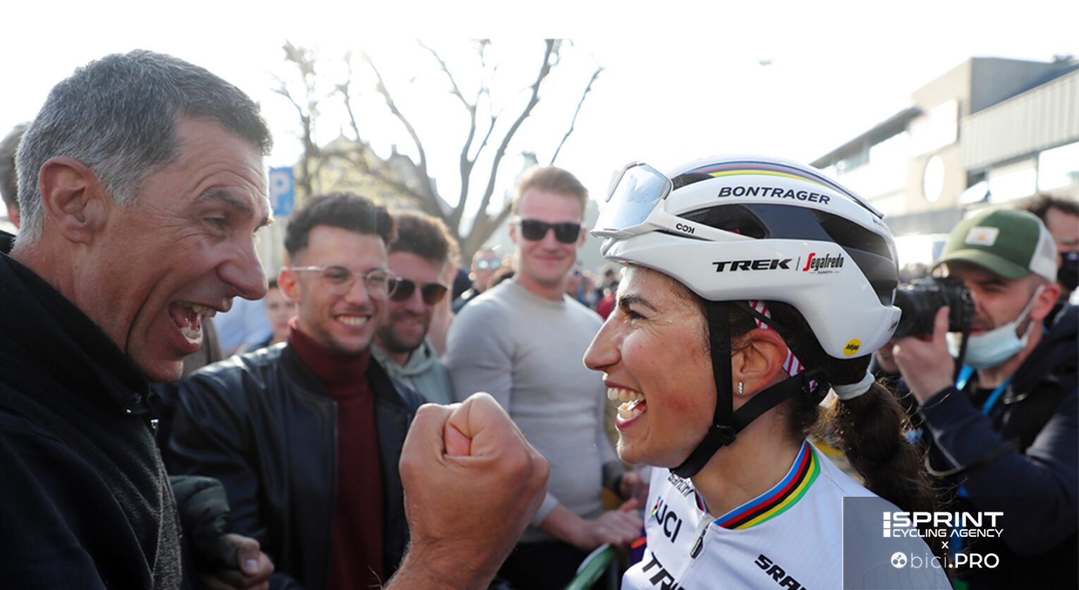 «In quello sguardo li si vede il massimo della gioia che un genitore ha nel vedere la figlia felice». La foto in apertura sta girando da una settimana sul web. Racchiude un padre e una figlia. Orgoglio. Amore. La stessa passione per la bicicletta. Sergio e sua figlia Elisa. Un’istantanea scattata qualche metro dopo l’arrivo vittorioso di Elisa Balsamo alla Gand-Wevelgem.