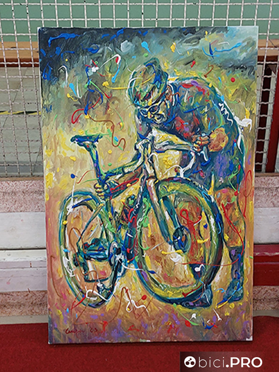 CAMPAGNOLA – Le immagini scorrono sul maxi schermo del salone delle cerimonie del bocciodromo di Campagnola Emilia. Sono quelle finali della Roubaix 2021. Sonny Colbrelli è sul palco a ricevere il premio “Bici al chiodo” e riguarda la sua impresa. Un pittore gli regala un dipinto a mano che lo immortala mentre sta per alzare al cielo la sua Merida Reacto prima di lasciarsi andare a quell’urlo liberatorio dopo il traguardo che emoziona ancora.