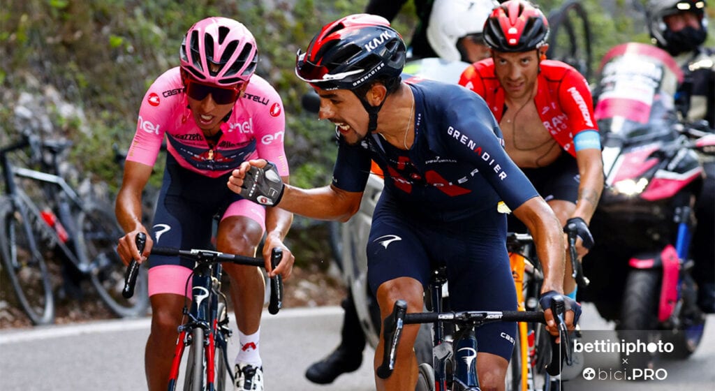 Per essere lì quando succede qualcosa, le variabili sono due. La prima è l’esperienza che ti guida e ti porta nel posto giusto al momento giusto. La seconda è la fortuna. Per esempio sei lì davanti al gruppo e mancano 250 chilometri all’arrivo, quando improvvisamente passa uno scoiattolo che provoca la caduta e tu riesci a immortalarla. Nell’altro caso invece mi viene in mente quando ho fotografato la crisi di Bernal nel 2021, quando ebbe quel momento difficile mentre veniva aiutato da Martinez. Io ero lì, ho sentito alla radio che Egan stava iniziando a lasciare un po’ di spazio dalle ruote e subito mi sono fermato con il motociclista. Appena il ritmo è aumentato, il colombiano si è staccato e c’è stata tutta la scena che ho scattato con Martinez che lo supportava in tutto.