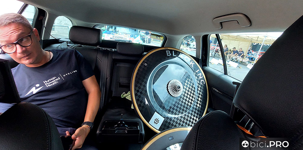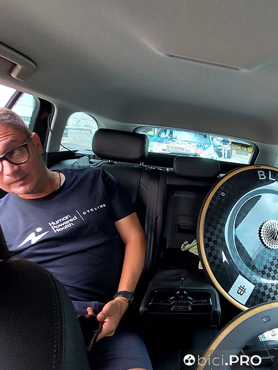 Sfruttando la disponibilità del team WorldTour statunitense, ci accordiamo sui dettagli da rispettare: ore 13,41 partenza di Katia Ragusa, quindi presentazione in zona ammiraglie almeno dieci minuti prima. Alla guida c’è Bronzini, nel sedile destro posteriore il meccanico spagnolo Joaquin Novoa (ex pro’ per due stagioni alla Cervélo) mentre a noi tocca il posto del passeggero davanti facendo ben attenzione a non interferire con tutta la strumentazione extra di bordo.
