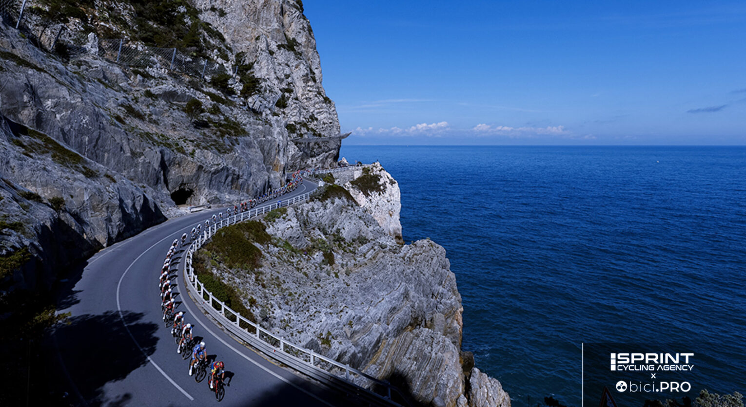 Stessa scena di prima. Saltiamo nella Bmw come cavallette. Per qualche chilometro procediamo in direzione opposta. Riprendiamo l’autostrada e rientriamo sull’Aurelia una cinquantina di chilometri prima della Cipressa. E’ un colpo da maestri. Ci godiamo il pubblico a bordo strada. La loro attesa diventa la nostra attesa. E poi gli scorci delle scogliere a picco, il blu del mare, il sole e i tre Capi.