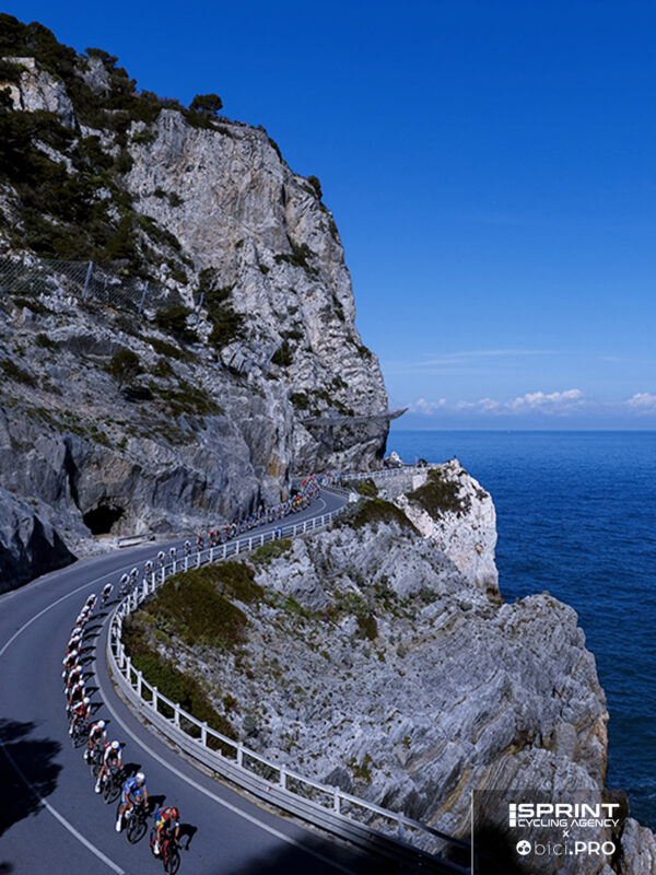 La discesa della Cipressa sembra infinita. Il mal di stomaco è in arrivo. Per fortuna arriva prima l’Aurelia. Adesso si punta il Poggio. E’ curioso come il drappello che ci precede, e parliamo dell’ottantesima o forse anche centesima posizione, proceda apparentemente piano. In realtà fila via a 46-48 all’ora. E sul Poggio gli stessi componenti toccano i 28 all’ora. E mentre salgono dal tornante sotto vediamo che osservano il mare.