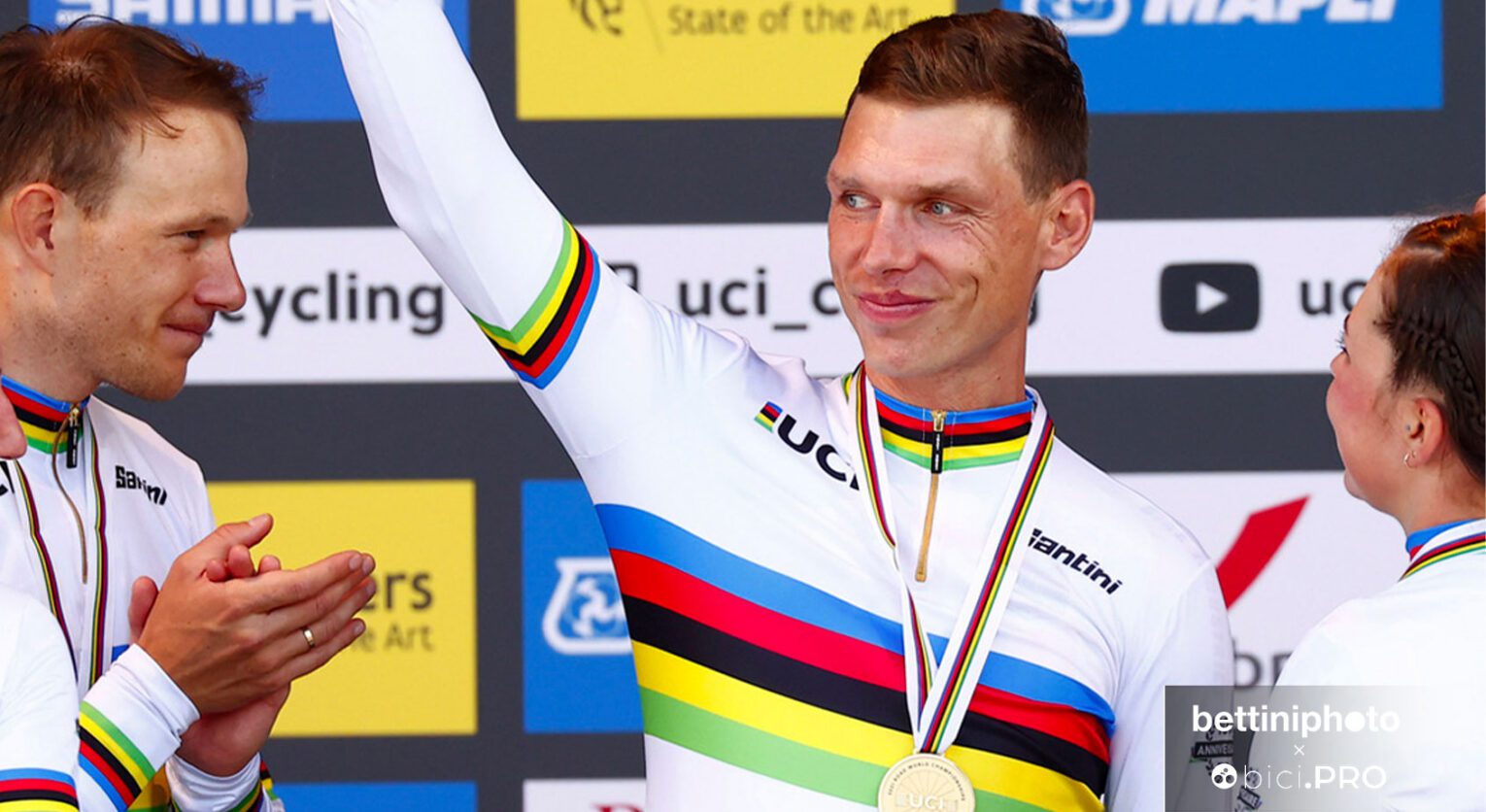 Ci sono stati due momenti ben precisi nella gioia di Tony Martin durante il pomeriggio di Bruges. Prima quella selvaggia quando le ragazze olandesi hanno tagliato il traguardo e la Germania ha urlato per la certezza dell’oro nella Mixed Team Relay. E uno più dolce, che gli ha inumidito gli occhi, quando sul palco il tedesco ha riconosciuto nuovamente le note dell’inno tedesco.