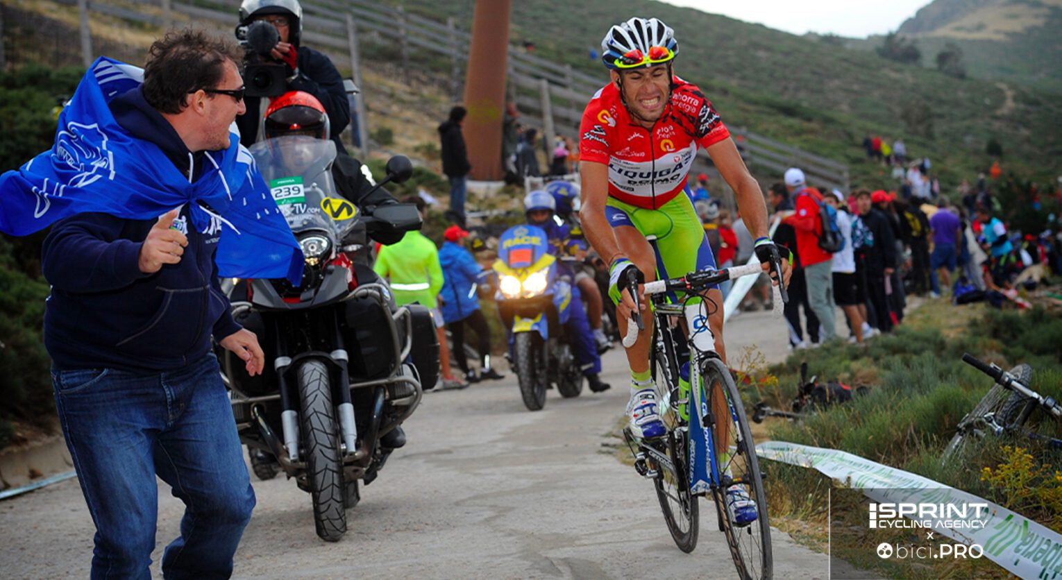 Sulla cima della montagna, tifosi e giornalisti spagnoli esplodono in un tuono quando Mosquera sferra l’attacco. La Bola del Mundo diventa di fuoco. Due chilometri e 700 metri all’arrivo, la strada conduce al primo tornante e per fortuna un po’ molla. Nibali vede davanti a sé la moto che segue lo spagnolo, per ora è tutto sotto controllo, ma l’altro intanto ha già guadagnato 13 secondi.