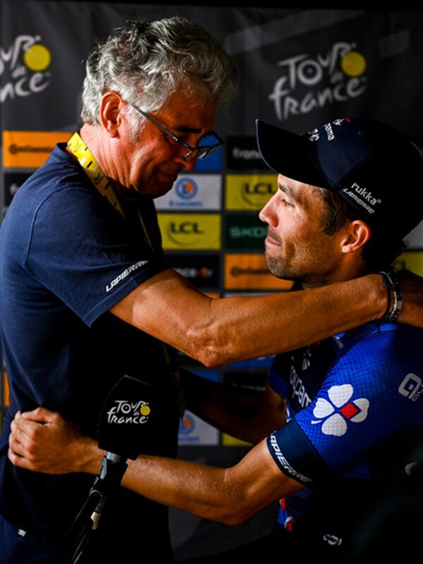 Sul traguardo di Le Markstein, con gli occhi gonfi e quella faccia da schiaffi che non vuole darti mai soddisfazione, Marc Madiot questa volta fa fatica a dissimulare l’emozione (nella foto Groupama-FDJ di apertura, la sua commozione è palpabile). Quando ci abbiamo parlato durante il secondo riposo, scherzando ha detto che il suo giorno critico sarà l’addio dopo il Lombardia – l’ultima corsa di Pinot – ma questa volta pensiamo che abbia decisamente sbagliato la previsione.