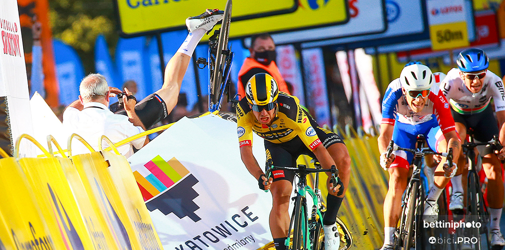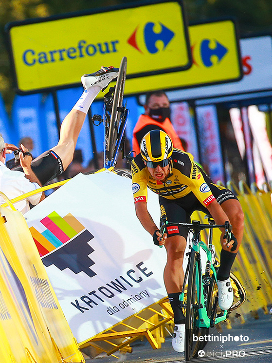 Ricordiamolo il fattaccio. Giro di Polonia. Su un arrivo che già si sapeva essere pericoloso, l’olandese in volata commette una scorrettezza. Dylan stringe verso la transenna Fabio che cade rovinosamente a terra. A terra ci finisce anche il corridore della Jumbo-Visma. Il problema è che quello della Deceuninck-Quick Step prima di toccare l’asfalto tocca (toccare è un eufemismo) le transenne e il cielo. Schizza talmente veloce che comunque la vittoria è sua.