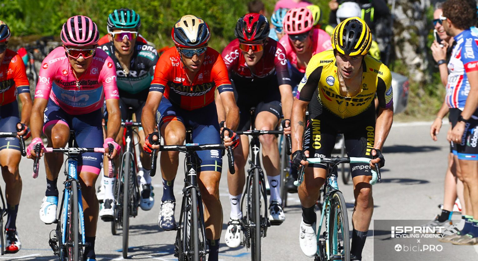 Il podio dell’edizione 2019 del Giro d’Italia ce lo ricordiamo tutti. Carapaz davanti a Nibali e Roglic. Una sfida a tre iniziata fin dalle prime tappe con gerarchie che si sono poi chiarite nei tapponi alpini. Quell’anno abbiamo visto un Primoz pimpante e in rosa fin dalla prima tappa, com’è suo solito fare. Successivamente si è creata la sfida fra i tre senza esclusioni di colpi. Una battaglia di nervi che Valerio Agnoli ha vissuto al fianco dello Squalo. Arrivi a bocca chiusa, abbuoni, cambi non dati. Dettagli che nel 2019 hanno incoronato Carapaz e lasciato l’amaro in bocca agli altri due litiganti.