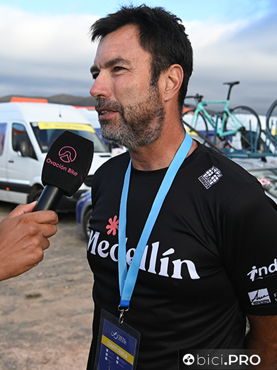 Sul traguardo all’Alto del Colorado, con gli occhi rossi per l’emozione, il tecnico del Team Medellin è al settimo cielo e ne approfitta anche per togliersi qualche sassolino dalle scarpe.