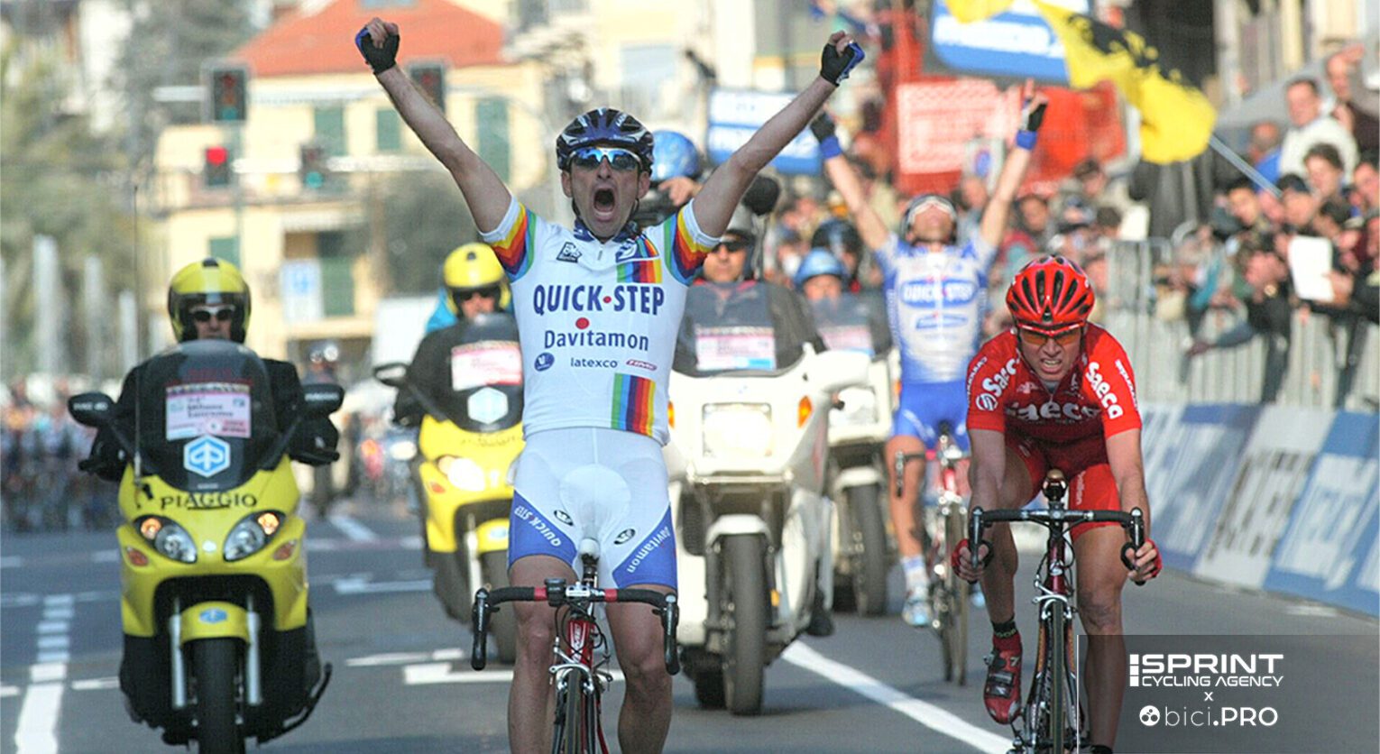 Un amarcord felliniano, andando a ripescare un’epoca che ci accompagna ancora oggi con quei campioni che ora guidano il ciclismo dall’ammiraglia e ricoprono ruoli in federazione e nel mondo tecnico delle due ruote. Facciamo un salto a vent’anni fa, partendo dalla foto utilizzata in apertura per farci raccontare la Milano-Sanremo 2003. A riavvolgere il nastro della memoria ci aiuta l’unico che dei tre non aveva le mani alzate al cielo ma l’orgoglio pieno, Mirko Celestino.