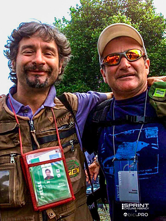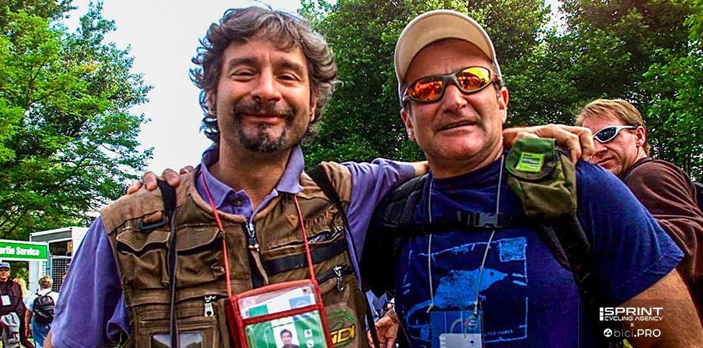 Chiudiamo gli occhi e rivediamo i flash della giornata. Si parte da Carpentras e al via c’è Robin Williams. L’immenso attore saluta Ilario Biondi, riconoscendo la somiglianza, e gli sussurra ridendo che potrebbero essere fratelli. Poi la corsa parte e Marco, che in classifica viaggia con un ritardo abissale di 10’34”, si stacca ancora una volta. Tuttavia questa volta, anziché sprofondare, resta lì con la sua fatica. Il tempo di inquadrare la fuga e lo vediamo spuntare nell’inquadratura alle spalle della fuga, dove la montagna si espone al vento. A quel punto noi siamo già sulla cima, cercando di seguire la corsa da uno schermo montato al riparo di un furgone. Di colpo da dietro si muove Armstrong che ha visto staccarsi Ullrich e ne approfitta, arrivando a doppia velocità.